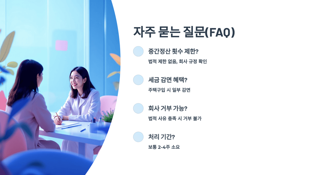 회사마다 내부 규정이 달라서, 중간정산 자체를 허용하지 않거나 조건이 더 까다로운 경우도 있어요. 반드시 사전 확인하고 움직이세요!