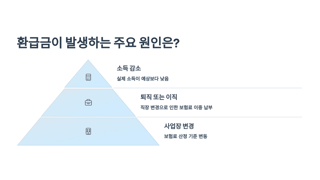 - 보험료 과납: 이중 납부, 자격 변동(직장 ↔ 지역 가입자), 소득 정산 등으로 발생.