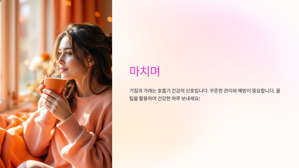 마지막으로, 호흡기 질환이 있는 환자나 노약자도 이 정보를 통해 기침과 가래를 완화시키는 데 큰 도움을 받을 수 있습니다!
