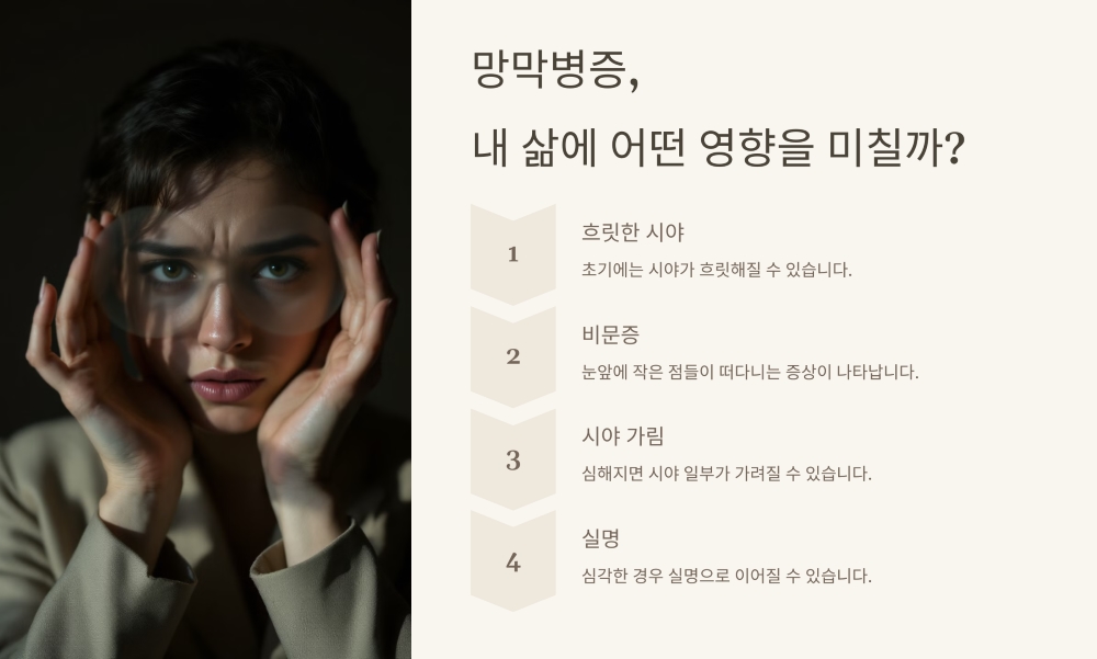 망막병증이 진행되면 처음엔 흐릿한 시야나 눈앞에 떠다니는 작은 점,