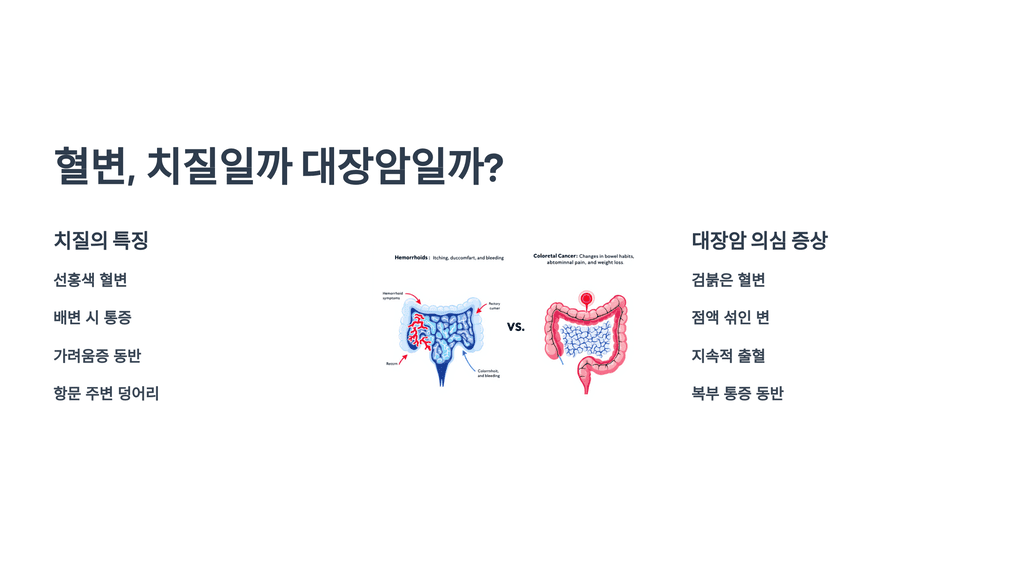 혈변은 많은 분이 치질로 오해하지만, 대장암 초기 증상일 수도 있어요. 혈변 원인을 정확히 파악하는 게 중요하답니다.