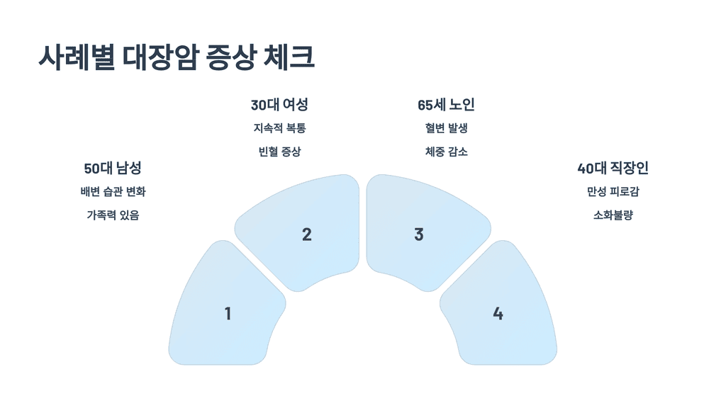 실제 경험을 통해 보면 대장암 초기 증상이 얼마나 다양하고 미묘한지 알 수 있어요. 아래 세 가지 사례는 조기 발견의 중요성을 보여줍니다.