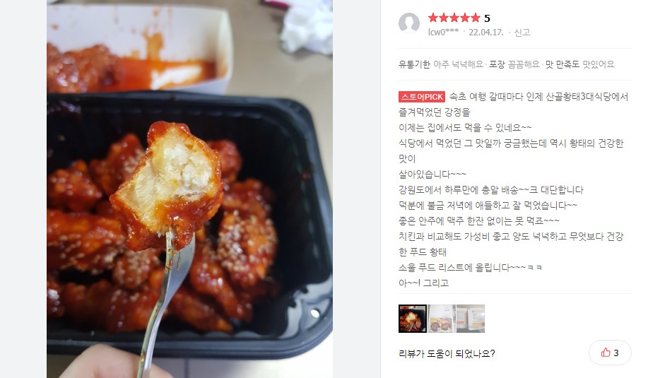 제가 산골황태3대식당 메뉴나 방문 포장으로만 판매를 하던 황태강정을 밀키트로 꼭 만들면 좋겠다고 생각했던 것은 마침 손님 중에 속초에서 닭강정을 어렵게 구매를 한 후 황태축제에 들렀다가 황태강정을 맛보시던 손님들의 반응들이었습니다. 당시에 속초강정이 때아닌 인기를 누리던 때였습니다.